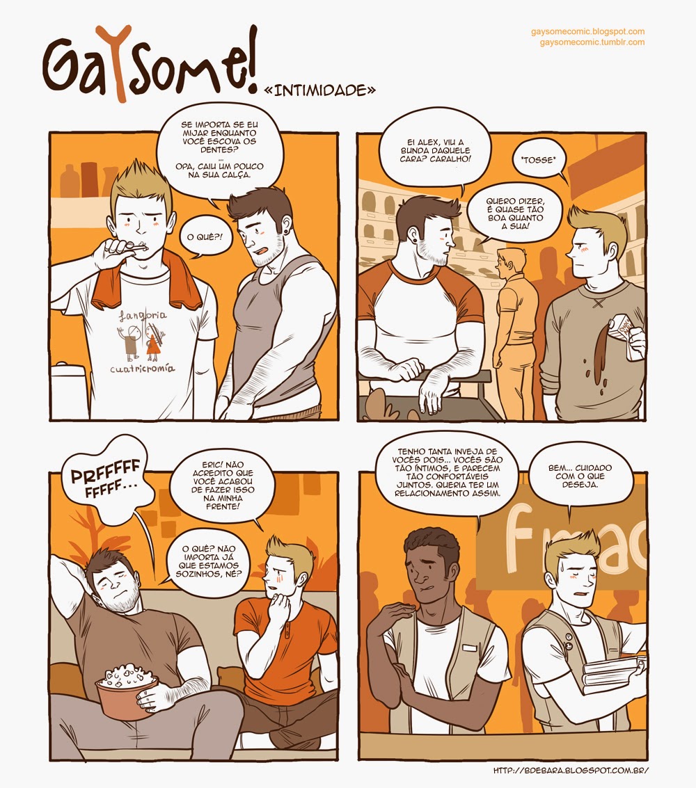 Hoje estou postando para vocês os GaYsome! do mês, que desvinculamos do Aleatoriedades e terá postagens próprias mensais. (Não é um trabalho só meu, traduzi com o Bara Jin e o Noah e foi revisado pelo Grigolow_BJ mas preferi não colocar tanta informação por se tratar de tiras individuais)